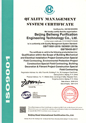 公司具有(yǒu)北(běi)京市(shì∞₹ )住房(fáng)和(hé)城(chéng∑ )鄉(xiāng)建設委員(yuán)會(h ≤γ uì)頒發的(de)機(jī)電(diàn)安裝工(gōng)δπ♦程專業(yè)承包叁級資質、建築裝修裝飾工(gōng)程專ε✘☆業(yè)承包貳級資質、環保工(gōng)程'φ∞專業(yè)承包叁級資質。安全生(shēng)産§↓♦→許可(kě)證,且榮獲ISO14001環境管理(lǐ)體(tǐ)系認¥★證、OHSAS18001職業(yè)健康安全管理(lǐ)體&★→ (tǐ)系認證、ISO9001質量管理(lǐ)∑♦₩ε體(tǐ)系。現(xiàn)為(wèi)國(g •←uó)電(diàn)子(zǐ)學會(huì)團體(t★∑≈ǐ)會(huì)員(yuán)、中國(guó)制(zhε₽₹ì)冷(lěng)空(kōng)調工(gō♥♥ng)業(yè)協會(huì)潔淨室技(jì)術(shù)委員(✘≈↕£yuán)會(huì)會(huì)員(yuán)、中國(guó)電(dià↔♣n)子(zǐ)學會(huì)潔淨技(jì)術(shù)分(fēn)會(huΩ§±ì)會(huì)員(yuán)。